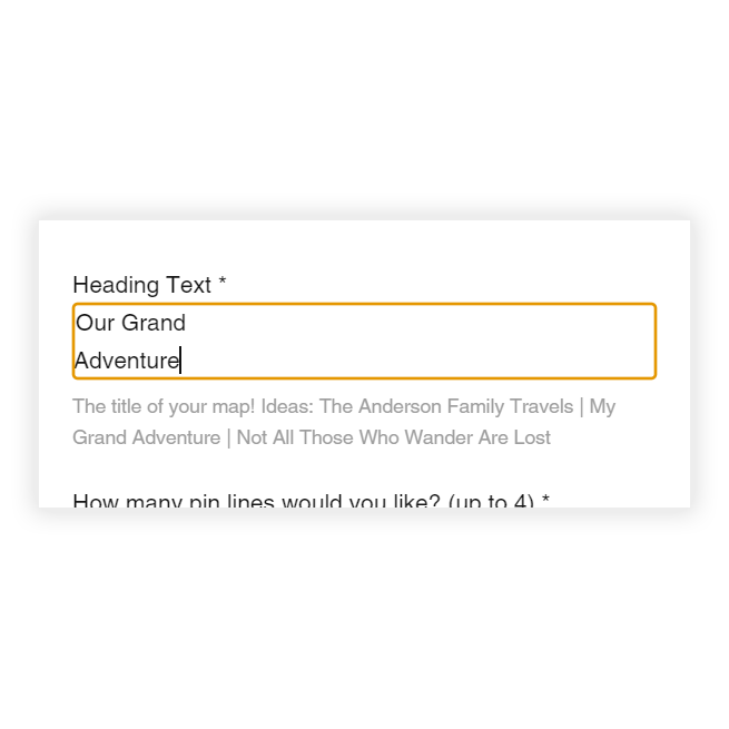 This is the title of your map! Use it to describe what's most important to you on your map. Use your family name, an inside joke, a hashtag, or whatever fun thing you can come up with! If you need some inspiration, there are some examples below!